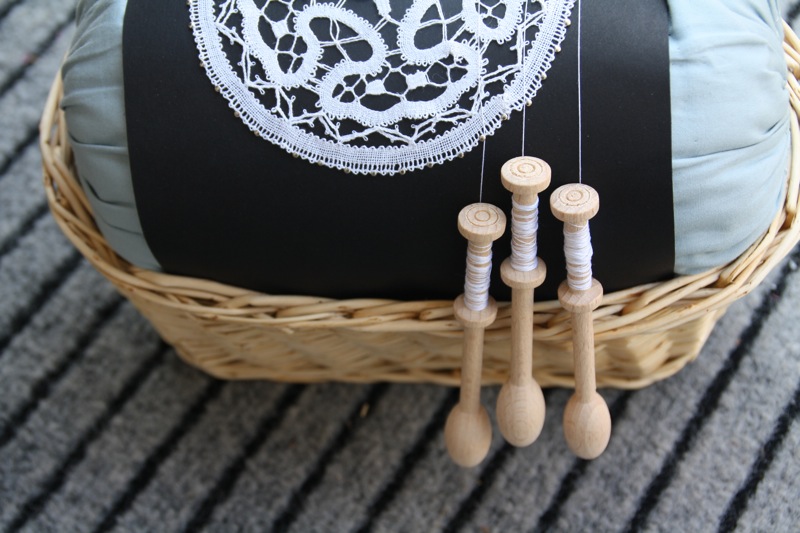 schema intrecciando abilmente il filo avvolto sui fuselli, piccoli bastoncini di legno di varie forme e misure, si